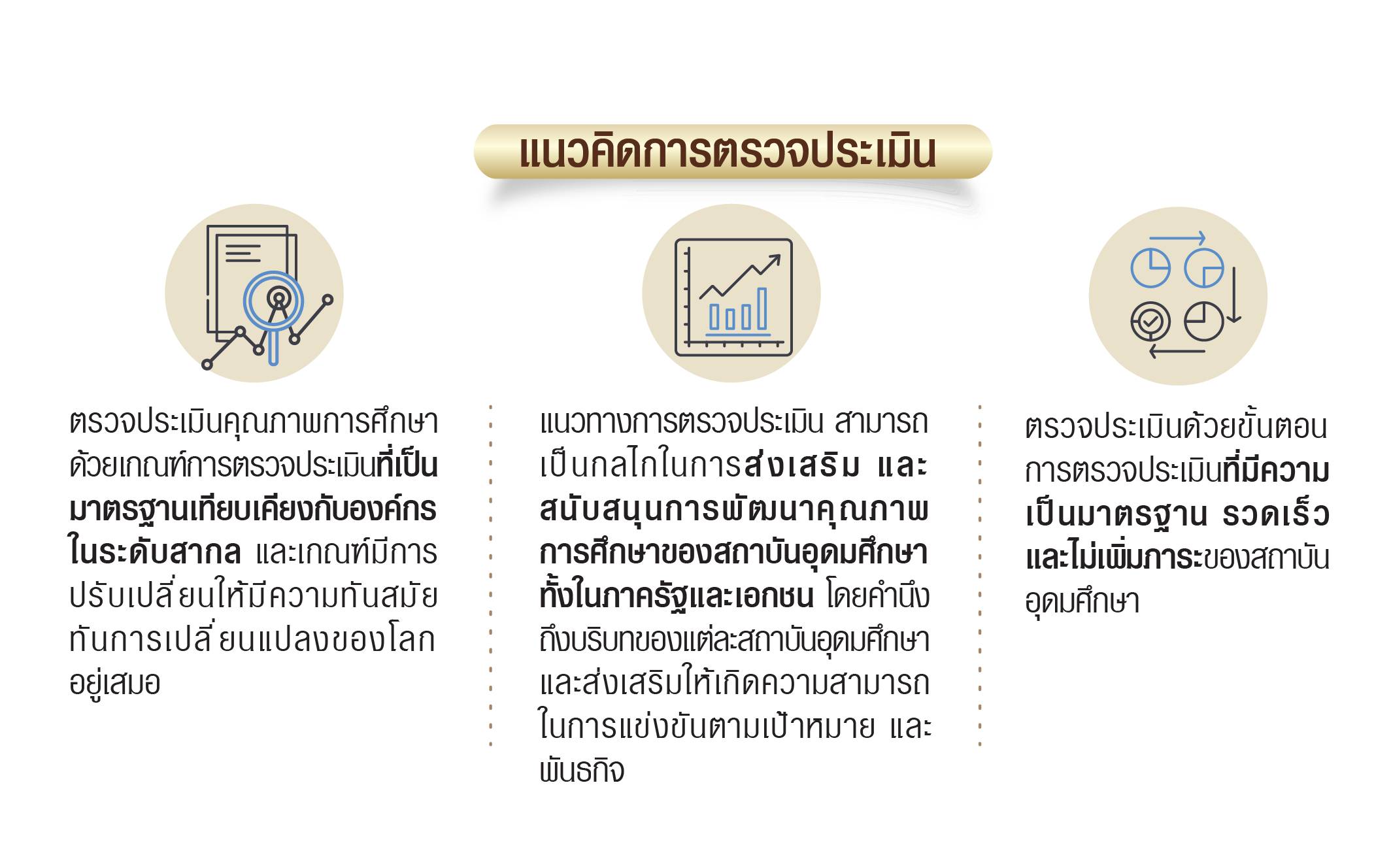 การประเมินคุณภาพภายนอกระดับอุดมศึกษาของไทยมุ่งเน้นการดำเนินการเพื่อยกระดับคุณภาพการศึกษาในสถาบันอุดมศึกษา โดยใช้กรอบการบริหารจัดการสู่ความเป็นเลิศ ซึ่งเป็นแนวทางในการจัดทำกรอบการประเมินคุณภาพจากหน่วยงานภายนอก โดยการประเมินคุณภาพนี้ ดำเนินการในระดับมหาวิทยาลัยซึ่งควบรวมหน่วยงานที่ให้บริหารด้านการศึกษาในระดับอุดมศึกษา เพื่อบรรลุวัตถุประสงค์ตามมาตรฐานการอุดมศึกษาที่ได้ประกาศไว้